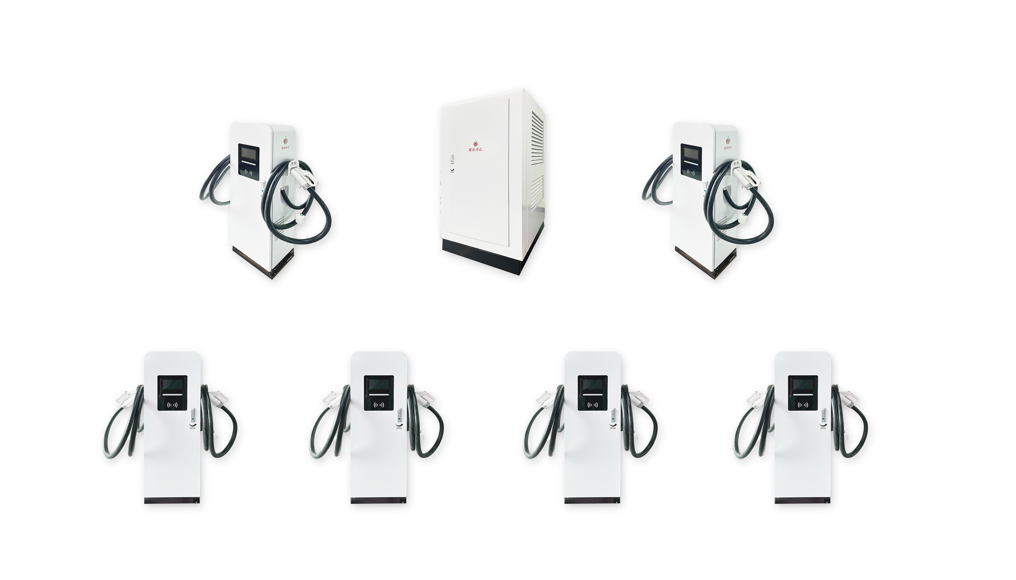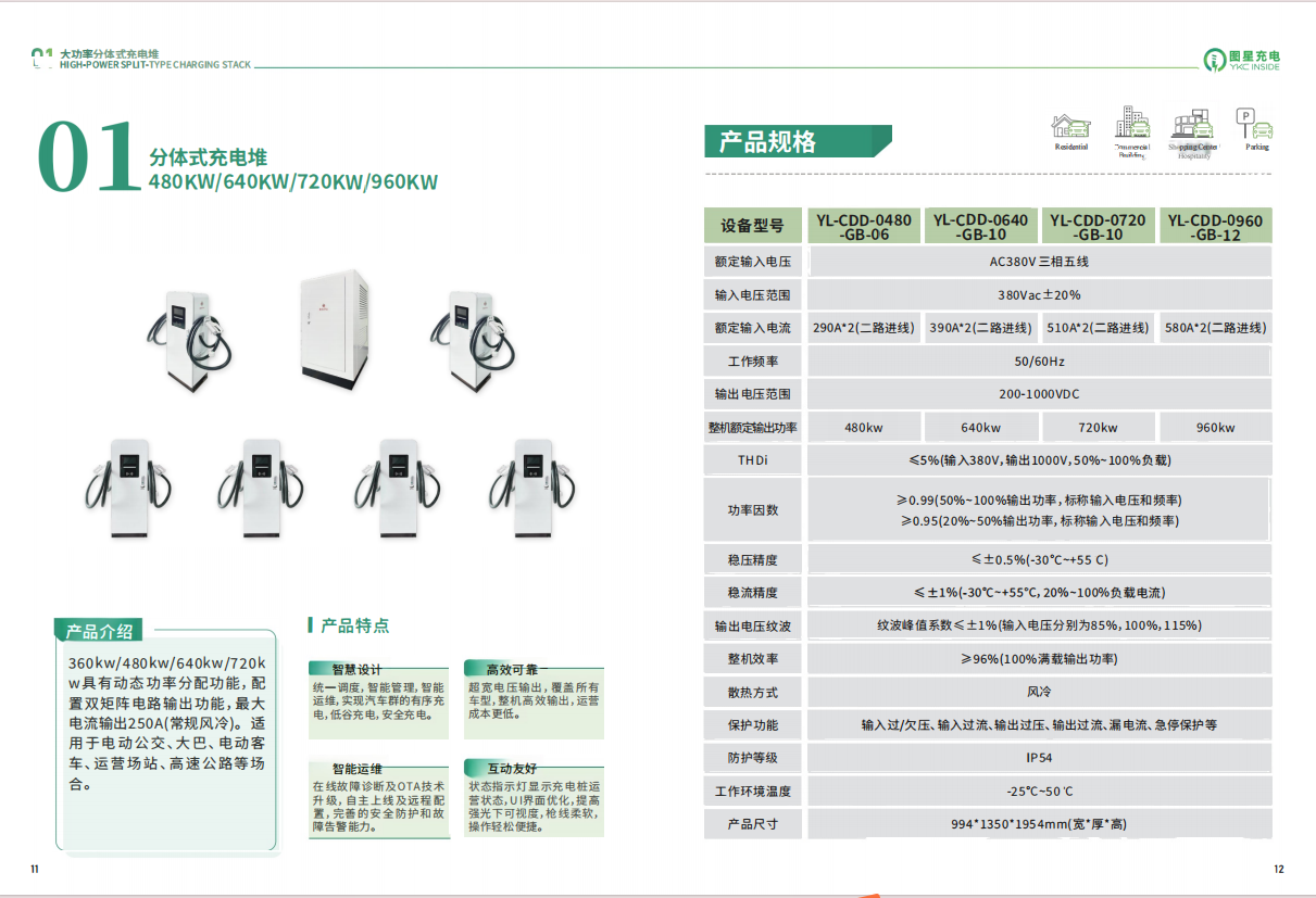 480-1280kwPDU全矩阵分体式充电堆具有动态功率分配功能,配置双矩阵电路输出功能,最大电流输出250A(常规风冷)。适用于电动公交、大巴、电动客车、运营场站、高速公路等场合。可最多带24把枪,并可带液冷终端